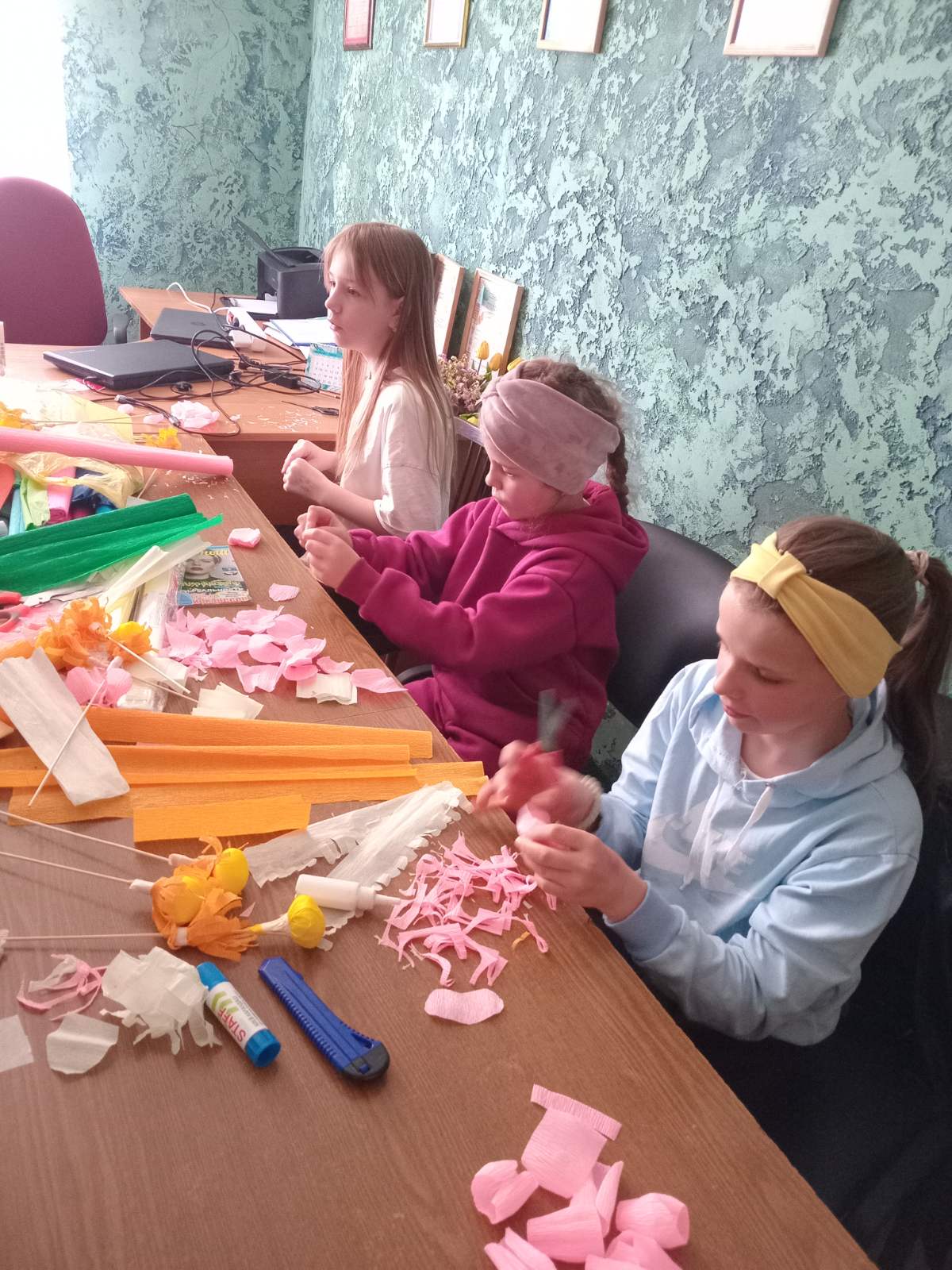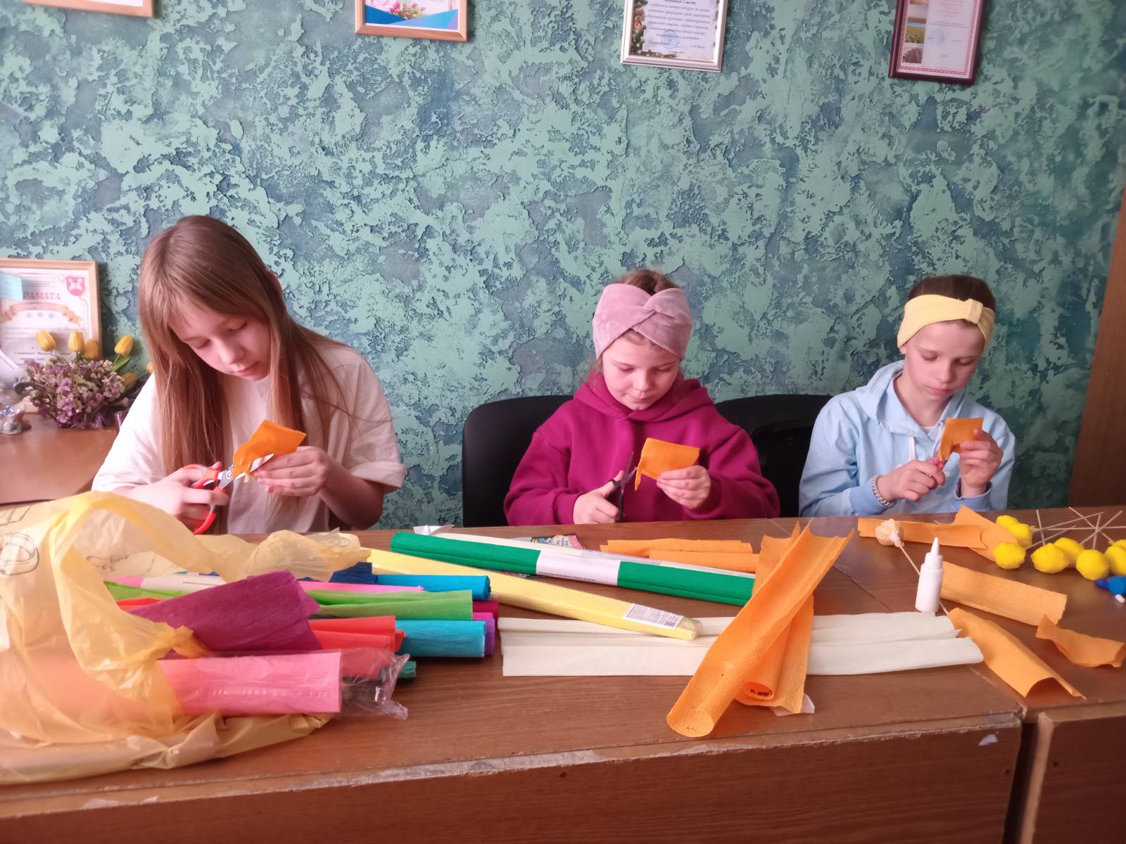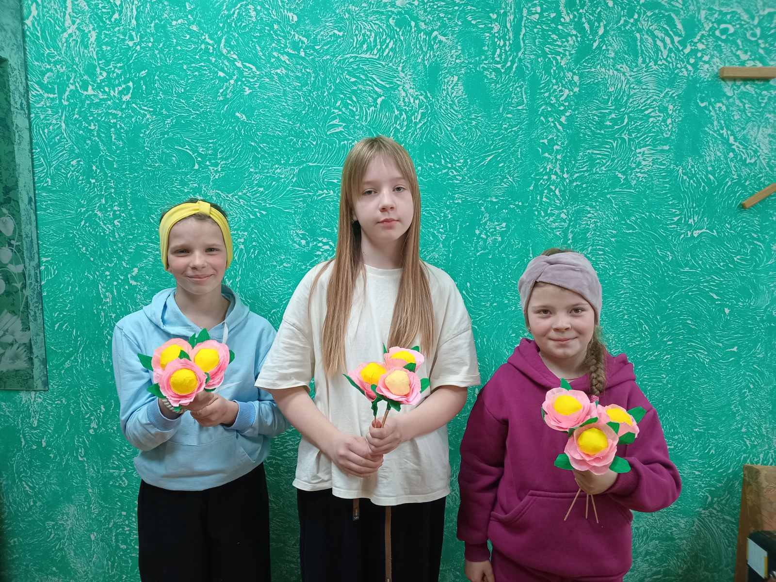 В рамках акции "Полезные каникулы" работниками филиала Завершский СДК был проведён мастер-класс с детьми по изготовлению цветов из бумаги. Букеты, сделанные своими руками, дети подарили своим мамам и бабушкам. Это мероприятие было приурочено году белорусской женщины